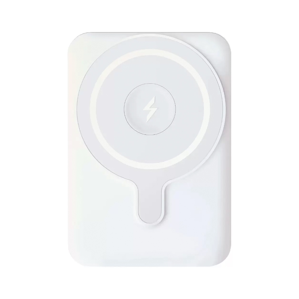 Компактный магнитный аккумулятор для iPhone с MagSafe. Заряжает по беспроводной магнитной площадке и через USB‑C, поддерживает одновременную зарядку двух устройств. Емкость 5000 мА·ч. Цвет — белый.